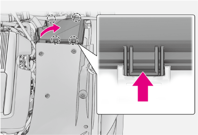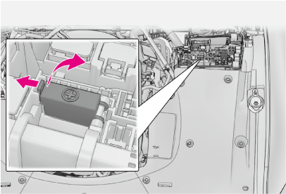 - ヒューズボックスのカバーを開けるツメを押しながら、カバーを持ち上げてはずします