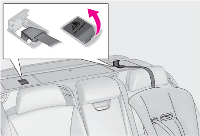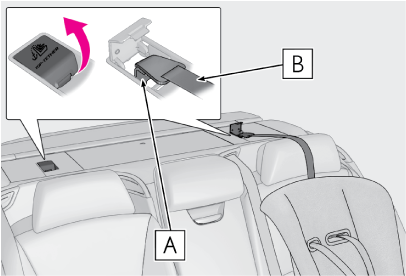 この車はリヤ外側席にトップテザーアンカレッジが装備されています。
