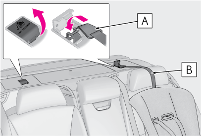 • ヘッドレストとチャイルドシートが干渉してチャイルドシートが正しく取り付けられない場合は、ヘッドレストを取りはずしてください。取りはずしができない場合は、ヘッドレストをいちばん上まで上げてください。