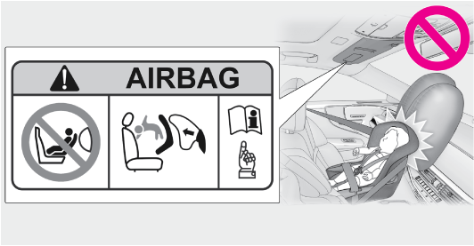 助手席側のサンバイザーに、同内容のラベルが貼られています。併せて参照してください。