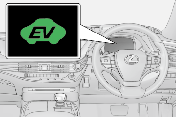 ガソリンエンジン停止中や、電気モーターのみで走行しているときに、EVインジケーターが点灯します。