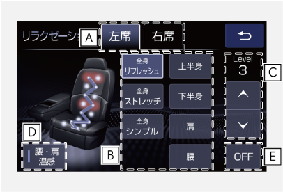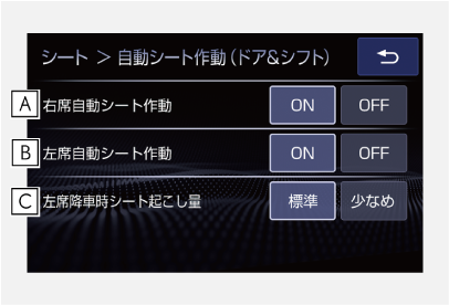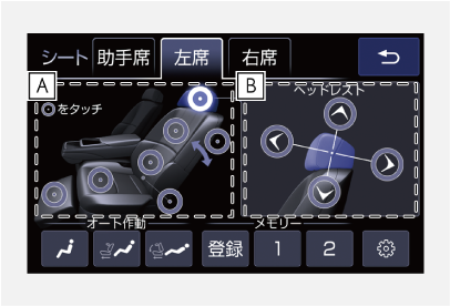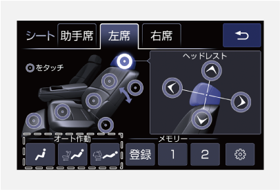 - リヤマルチオペレーションパネルのHOME画面で“シート”をタッチする(→リヤマルチオペレーションパネル)