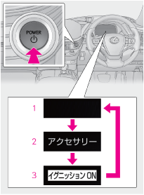電子キーを携帯して次の操作を行うことで、ハイブリッドシステムの始動またはパワースイッチのモードを切りかえることができます。