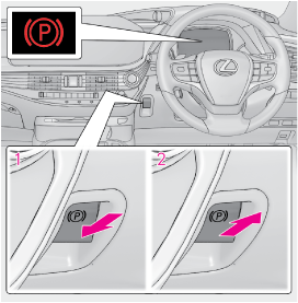 パーキングブレーキスイッチを操作してください。何度か操作しても表示が消えない場合は、システムに異常があるおそれがあります。レクサス販売店で点検を受けてください。