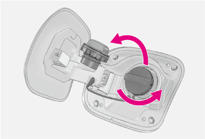 すぐに開けると、気温が高いときなどに、給油口から燃料が噴き出るおそれがあります。