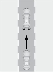 後方車両への接近警報は、同じ車線を走行する後方車両が追突の可能性が高い状況のとき、検知範囲に入った車両を検知します。