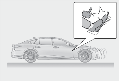 急アクセル時加速抑制が作動すると、ハイブリッドシステムの出力を抑制します。すみやかにアクセルペダルから足を離して、ブレーキペダルを踏んでください。アクセルペダルを踏み込んだままでいると、しばらくしたあとに車両が加速し、思わぬ事故につながるおそれがあり危険です。