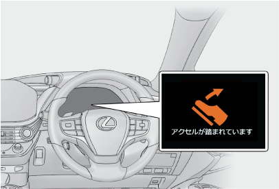 メッセージが表示されたときは、すみやかにアクセルペダルから足を離し、ブレーキペダルを踏んでください。