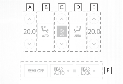 “REAR AUTO” :リヤ席の吹き出し口と風量が自動的に調整される(→オート設定で使用する