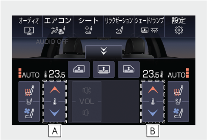 • センターディスプレイのリヤエアコン操作画面もしくはリヤマルチオペレーションパネルでリヤ席の温度を設定する