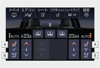 また、ショートカット画面でもリヤシートヒーター/リヤシートベンチレーターを操作できます。