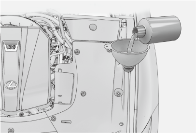 ハイブリッドシステムが熱いときやハイブリッドシステム作動中は、ウォッシャー液を補充しないでください。