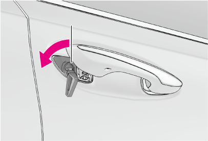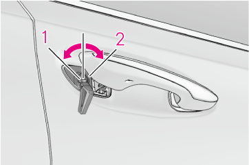 1. 運転席側のドアハンドルを引いたまま、メカニカルキーを挿し込む