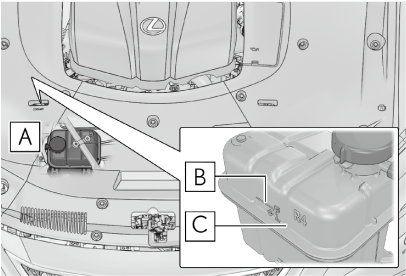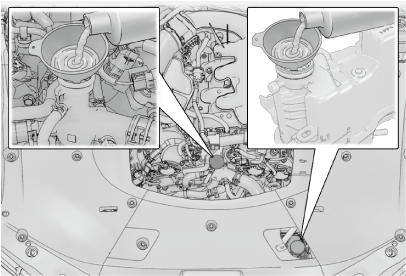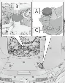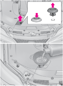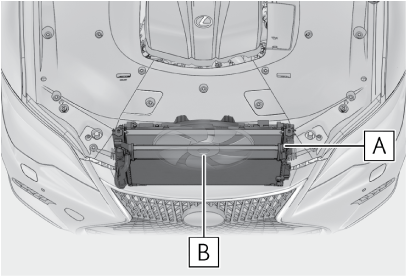 ハイブリッドシステムおよびラジエーターが熱い場合は、エンジンカバー内側の冷却水注入口のキャップや冷却水リザーバータンクのキャップを開けないでください。