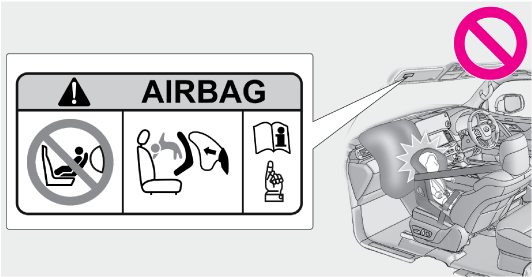 うしろ向きに取り付けていると、事故などで助手席SRSエアバッグがふくらんだとき、重大な傷害におよぶか、最悪の場合死亡につながるおそれがあります。