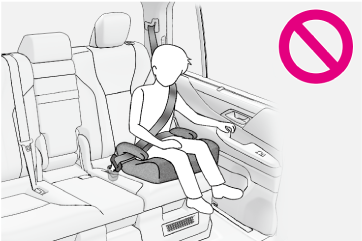 チャイルドシートの隣の席を使用するときは、肩部ベルトが確実に肩を通り、腰部ベルトが腰骨のできるだけ低い位置に密着することを確認してください。チャイルドシートの隣の席に座ったときに、チャイルドシートの種類によっては、乗員の体またはシートベルトがチャイルドシートと干渉するためシートベルトが正しく着用できず、十分な効果を発揮できない場合があります。その場合は、他の席を使用してください。