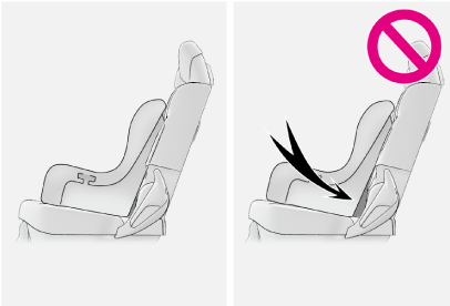 やむを得ず助手席にチャイルドシートを取り付ける場合には、チャイルドシートをうしろ向きに取り付けないでください。
