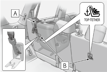 ヘッドレストとチャイルドシートまたはテザーベルトが干渉してチャイルドシートが正しく取り付けられない場合は、ヘッドレストを取りはずしてください。(→ヘッドレスト