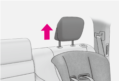 3. ヘッドレストとチャイルドシートが干渉してチャイルドシートが正しく取り付けられない場合は、ヘッドレストを取りはずしてください。取りはずしができない場合は、ヘッドレストをいちばん上まで上げてください。(→ヘッドレスト