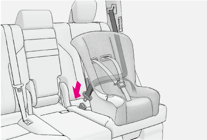 • シートベルトのショルダーアンカーがチャイルドシートベルトガイドより前にある場合は、シートを前方に動かします。
