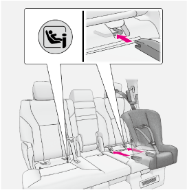 • サードシートにチャイルドシートを取り付けるときは、セカンドシートとチャイルドシートが干渉しないようにセカンドシートを調整してください。
