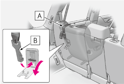 5. チャイルドシートにシートベルトの固定装置が備わっていない場合は、ロッキングクリップ(別売)を使用して固定する