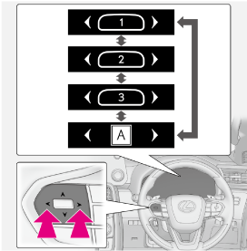 ハンドル上のオーディオ操作スイッチを使用したときに、オーディオ操作の表示がされます。