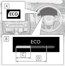 環境に配慮した運転をしているとき、エコドライブインジケーターランプが点灯します。必要以上にアクセルペダルを踏んだときや停車中は消灯します。