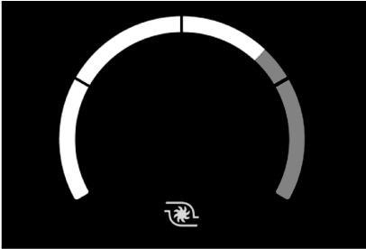 現状のアクセル開度がエコ運転の範囲をこえたとき、エコドライブインジケーターゾーン表示の右側が点灯します。このとき、エコドライブインジケーターランプは消灯します。