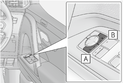 - 調整するミラーを選ぶには、スイッチを押すインジケーターが点灯します。