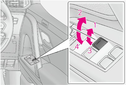挟み込み防止機能や巻き込み防止機能が異常に作動してしまい、ドアガラスを開閉することができないときは、開閉することができないドアのパワーウインドウスイッチで、次の操作を行ってください。