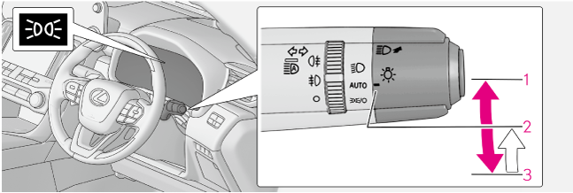 停車中のみ点灯可能。車両を発進させると2による点灯状態に切りかわります。