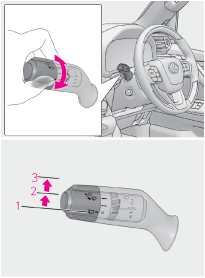 レバーを前方へ押すとワイパーと連動してウォッシャーが作動します。