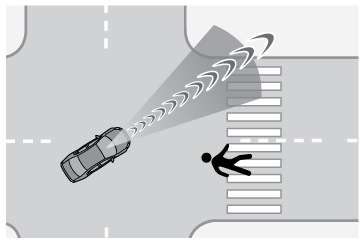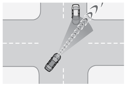 交差点など、側方から接近する車両や自動二輪車との衝突の可能性が高いとシステムが判断したとき、衝突警報およびプリクラッシュブレーキによる支援を行います。