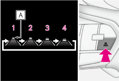 スイッチを押すごとに次のように車間距離を切りかえます。