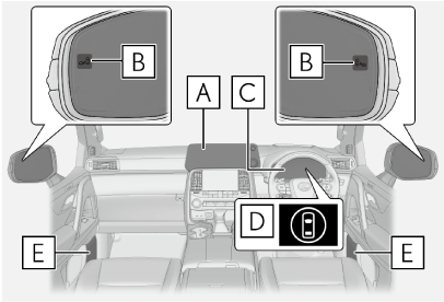 - ドアミラーインジケーター開いたドア(バックドアを除く)と衝突する可能性がある車両・自転車を検知したときは、検知した側のドアミラーインジケーター(→表示灯一覧)が点灯します。検知している側のドアを開いた場合は、ドアミラーインジケーターが点滅します。