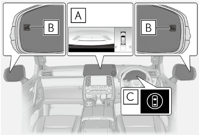 自車の右後方または左後方から接近している車両を検知したときは、両側のドアミラーインジケーター(→表示灯一覧)が点滅し、ブザーが鳴ります。