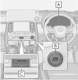 パワートレーン制御、ステアリング制御、サスペンション制御、またはエアコン動作の機能をお好みで設定し走行することができます。カスタムモードは、マルチメディア画面で設定します。(→ユーザーカスタマイズ機能)カスタムモード 表示灯が点灯します。