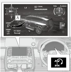 を選択して、オフロード走行情報画面を表示させる。(→フロントマルチオペレーションパネル)車速が約10km/h 以下のとき