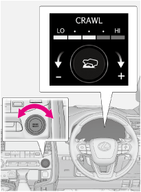 アクセルペダルやブレーキペダルを踏まなくても、凹凸の大きなオフロードを一定の低速度で走行でき、すべりやすい路面でのスリップや車輪の空転を最小限に抑え、安定して走行できます。