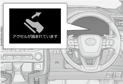メッセージが表示されたときは、すみやかにアクセルペダルから足を離し、ブレーキペダルを踏んでください。