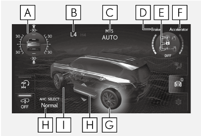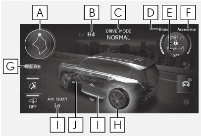 フロントマルチオペレーションパネルを使ってエアコンの操作をすることができます。また、オフロード走行に関する情報を表示することもできます。