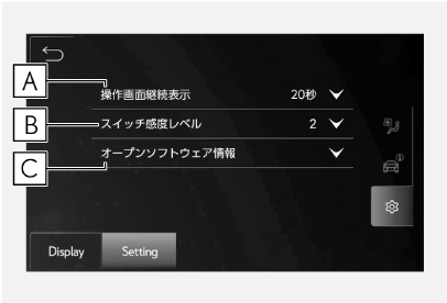 操作画面に手を近付けた状態で、エンジンスイッチをACCまたはONにすると、操作画面が反応しないことがあります。その場合、操作画面から手を離し、エンジンスイッチをOFFにしてからONにしてください。