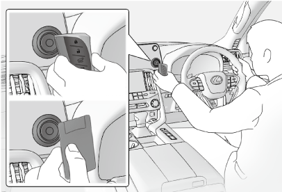 ここで説明しているエンジンの始動方法は一時的な処置です。電池が切れたときは、ただちに電池の交換をおすすめします。(→電子キーの電池交換)