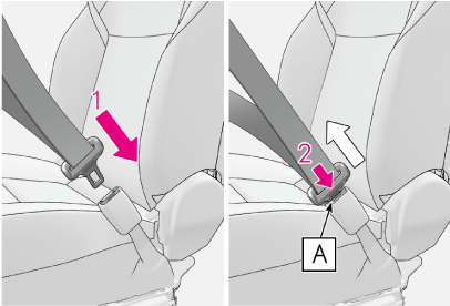 プレートがバックルに確実に挿し込まれているか、シートベルトがねじれていないかを確認してください。うまく挿し込めない場合はただちにレクサス販売店に連絡してください。