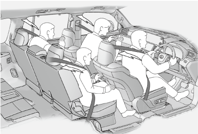 前方・側方から強い衝撃を受けたときや、横転したときにフロント席・セカンドシート外側席のシートベルトを引き込むことで適切な乗員拘束効果を確保します。