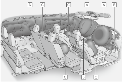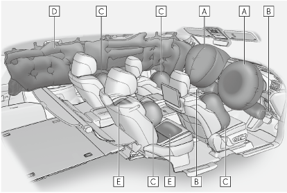SRSエアバッグの配置(5人乗り車、7人乗り車)