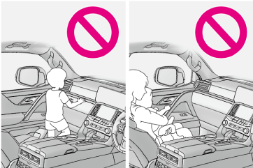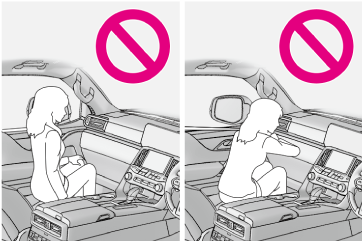 お子さまを助手席SRSエアバッグの前に立たせたり、ひざの上に抱いたりしない