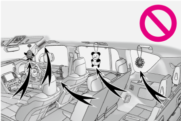 エアバッグがふくらむ場所を覆うようなアクセサリーを使用しないでください。エアバッグが作動する際、アクセサリーが干渉するおそれがあります。そのようなアクセサリーがエアバッグが正常に作動するのをさまたげ、システムを不能にしたり、またはエアバッグが誤って作動したりして、重大な傷害におよぶか、最悪の場合死亡につながるおそれがあります。