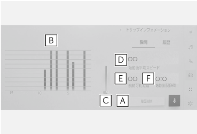 燃費履歴画面で“更新”を選択すると、平均燃費の値とグラフが更新され、新たに平均燃費の記録を開始します。